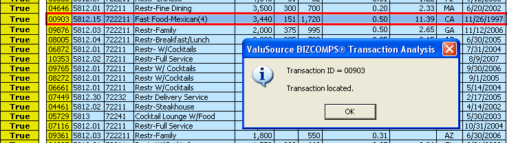 When you select the OK button, the workbook will find the transaction in the other worksheet, highlight it there, and tell you found it. |