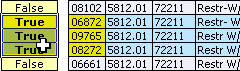 To select or deselect a transaction using the mouse, right-click on its cell in the Selected column. The cell will change to the opposite setting. If you are deselecting a transaction, the cell will change from True to False. If you are selecting a transaction, it will change from False to True. You can select a range of cells, then toggle all of them by right-clicking on the selected range.