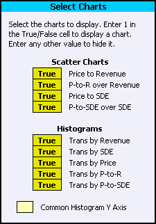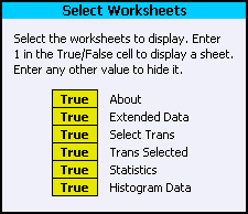 Y Axis Scale The histograms can share a common Y axis scale, or can be scaled independently. See Common Histogram Y Axis. Selecting Transactions for Analysis A transaction is selected for analysis when it displays True in the Selected column of the Select Trans worksheet. The following image shows two transactions, one that is selected for analysis and one that is not: |